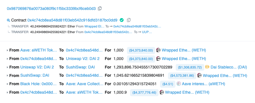 In the following transaction example, you can see an arbitrage trade that turns 1,000 ETH into 1,045 ETH.