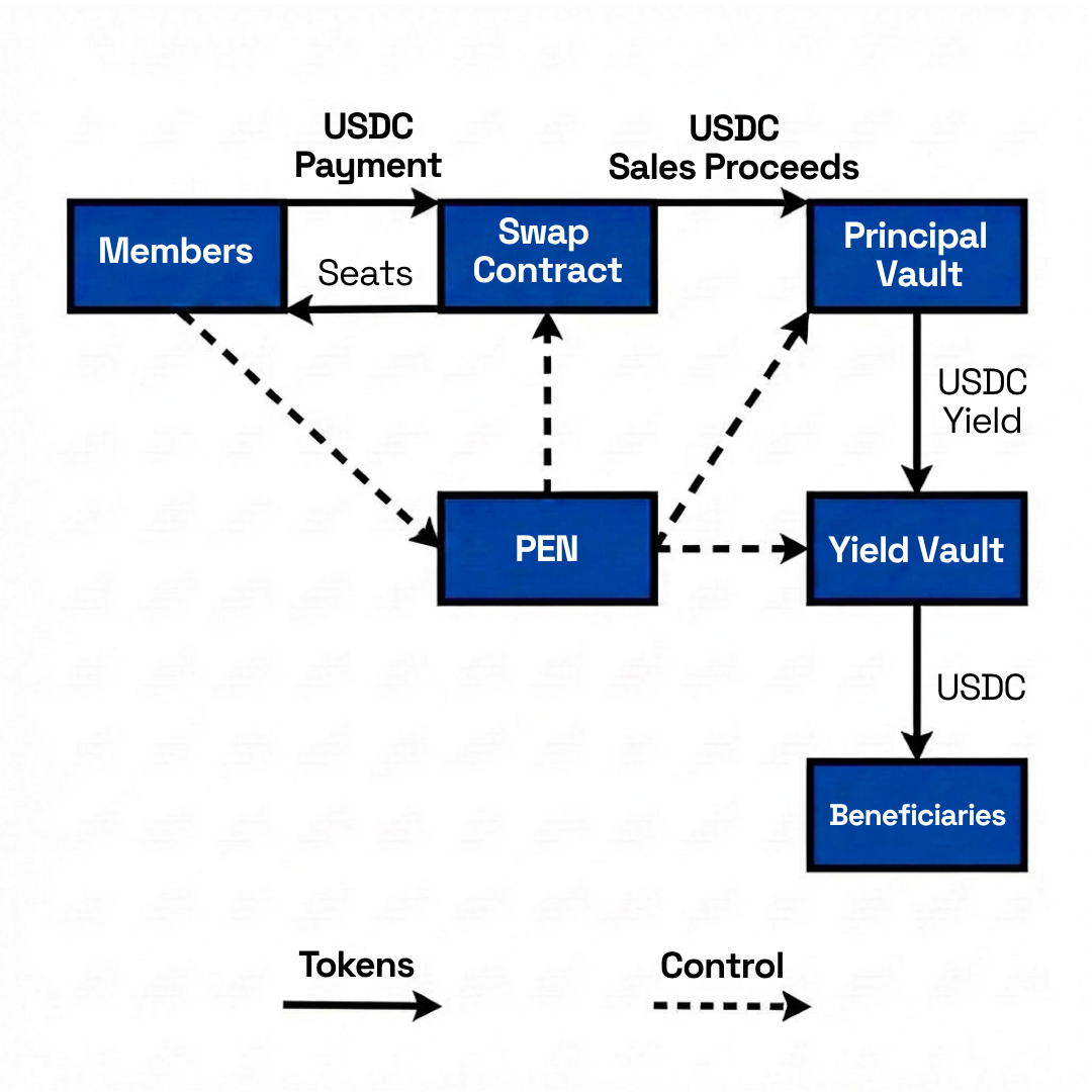 Members purchase seats to signal alignment, steward capital toward shared goals, gain influence over funding decisions, and build a reputation within the PEN and broader ecosystem.